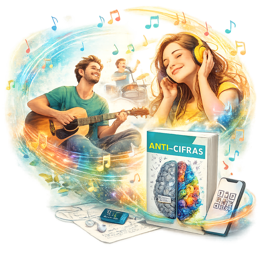 O Anti-Cifras é um livro digital que ensina você a pensar música pelo ouvido.